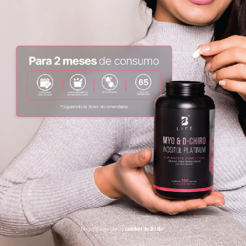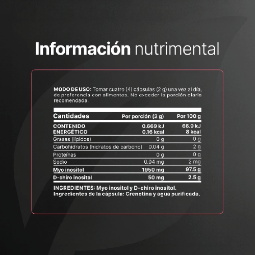 Increíble mezcla de Myo-Inositol y D-Chiro Inositol (Ratio de 40:1), una composición valiosa para tu bienestar, gracias a su máxima concentración de 2000 mg por porción, en comparación con otras presentaciones que solo contienen 705 mg. Contiene 260 cápsulas.
