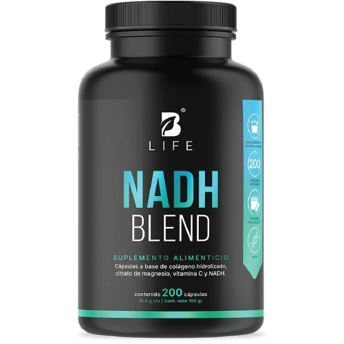 Diseñada a base de NADH, Colágeno Hidrolizado, Citrato de Magnesio y Vitamina C. Ingredientes valiosos para la energía de tu cuerpo. Contiene 200 cápsulas.