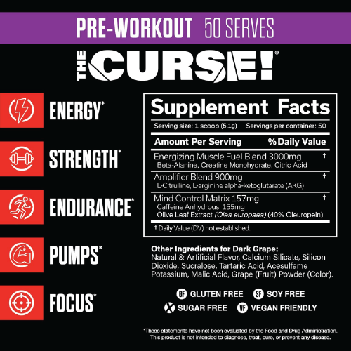 NX SPORTS The Curse! El pre-entrenamiento ofrece energía loca y enfoque mental de visión de túnel, ingredientes de bomba muscular de siguiente nivel y sabores épicos para ayudar a mejorar el rendimiento, mantenerte motivado y romper absolutamente tus objetivos. Formulado para apoyar la fuerza y el rendimiento, The Curse! es ideal para cualquier persona seria acerca de mantenerse concentrado y aprovechar al máximo su rutina de fitness.